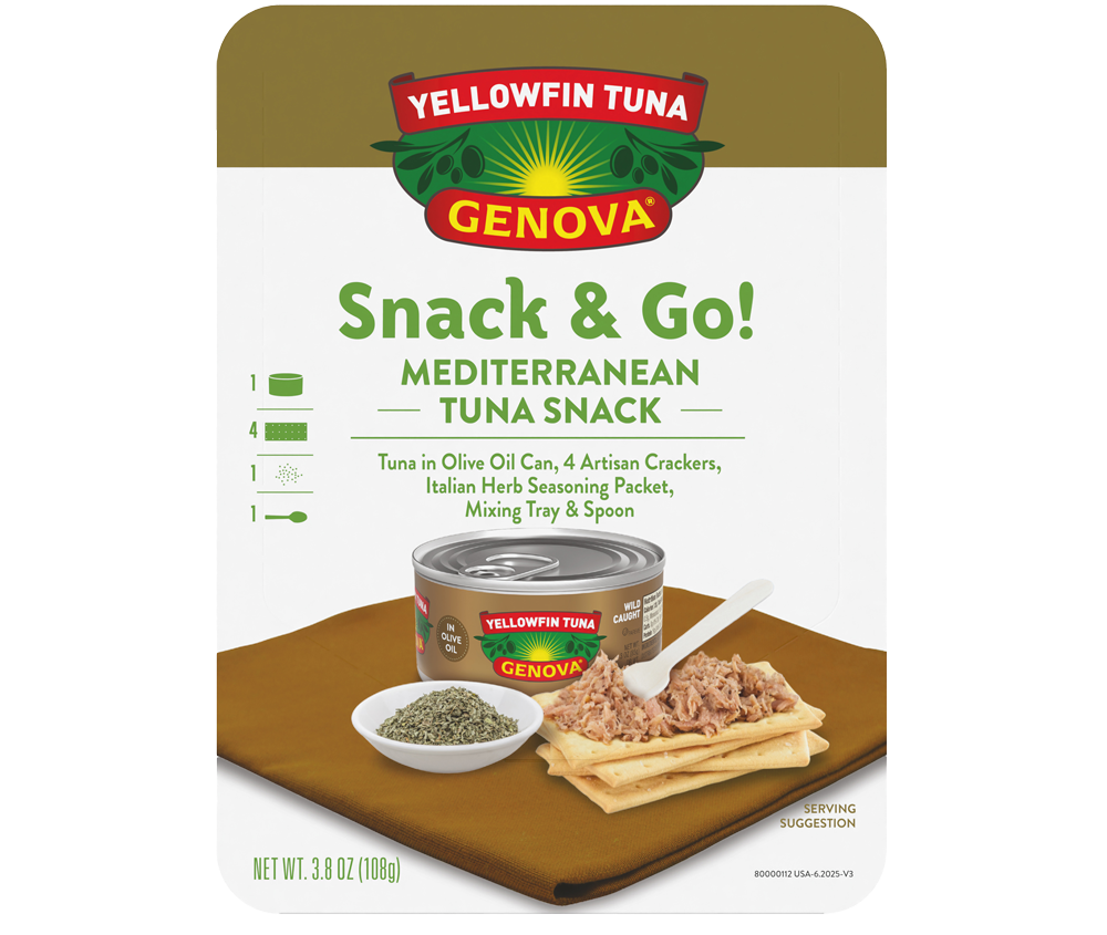 Solid Yellowfin Tuna (Yellowfin Tuna, Olive Oil, Sea Salt), Artisan Crackers [Enriched Unbleached Flour (Wheat Flour, Malted Barley Flour, Niacin, Reduced Iron, Thiamin Mononitrate, Riboflavin, Folic Acid)], Buttermilk (Cultured Low-Fat Milk, Salt, Sodium Citrate, Expeller Pressed Canola Oil, Cane Sugar, Extra Virgin Olive Oil, Sea Salt, Baking Soda, Topping Salt; Italian Herb Seasoning Packet (Herbs and Spices).